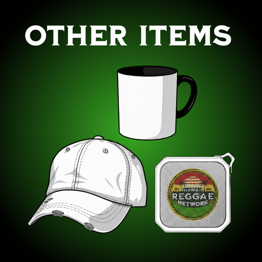 Show your love of Reggae music from Hawaii! The Hawai’i Reggae Network has an exclusive line of merchandise that embodies the Aloha we have for Reggae here in the 808. Whether its for the weekend concert, or the every day fit, you can take those good vibes with you!